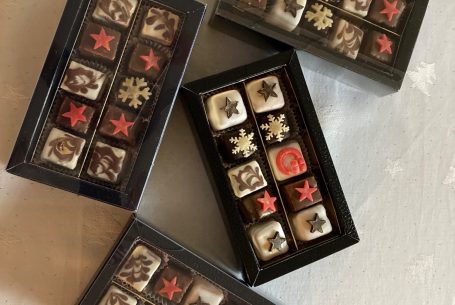 - Pralinenschalen aus weißer und zartbitter reiner belgischer Schokolade